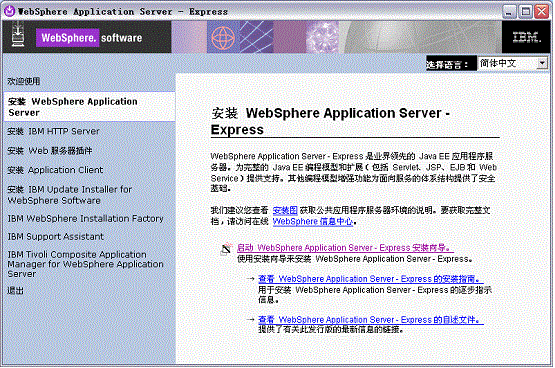 Step2:启动 WebSphere Application Server - Express 安装向导。