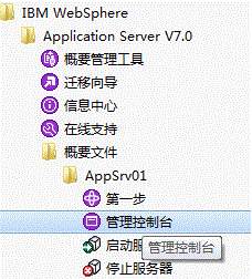 通过开始菜单IBM WebSphere> Application Server V7.0 > 概要文件> AppSrv01>管理控制台,